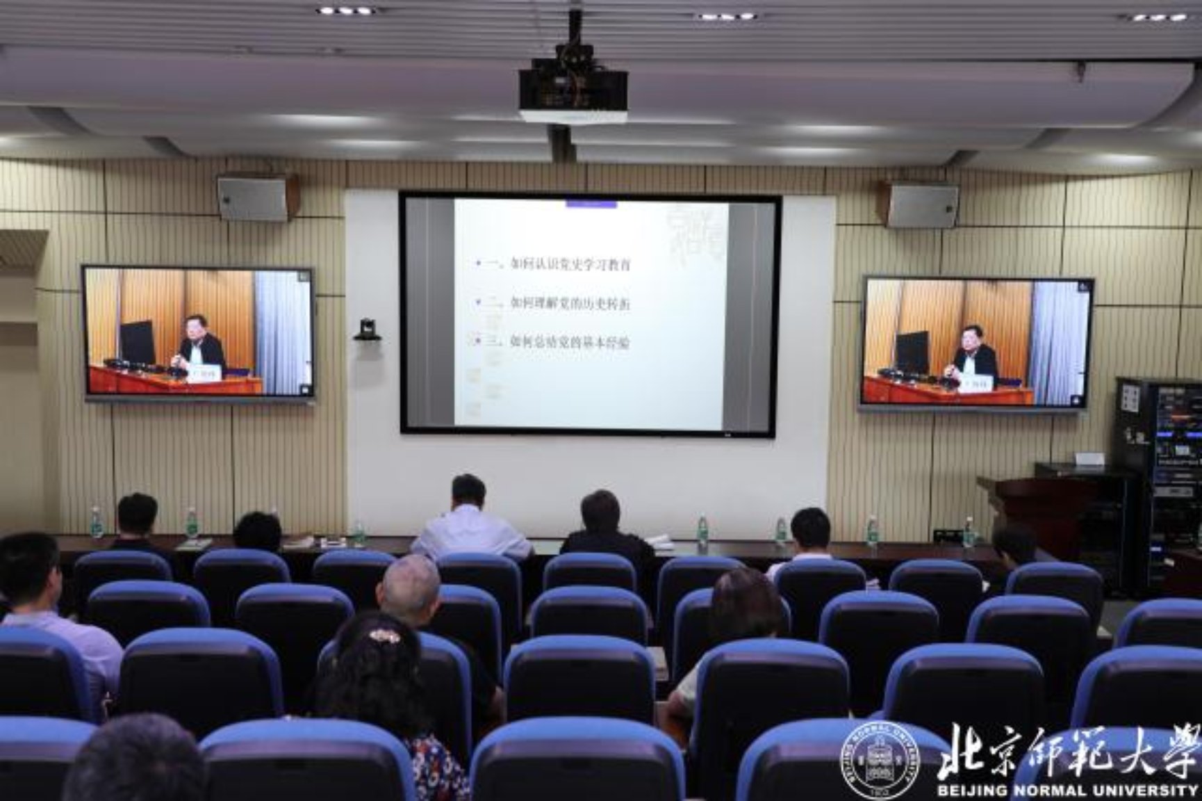 3月31日,由BB贝博艾弗森原官方网站、党委学生工作部、珠海园区管委会办公室联合举办的“静如讲坛”2021年第一讲,在北师大北京校区敬文讲堂举行。此次讲座嘉宾是教育部高等学校社会科学发展研究中心主任王炳林教授,主讲题目为“从党的历史中汲取智慧和力量”。此次讲坛北京校区和珠海校区同步进行。BB贝博艾弗森原官方网站副校长王守军、珠海园区党委理论学习中心组成员、珠海园区各部门和院系负责人以线上直播的方式参加了讲座;BB贝博艾弗森原官方网站党委理论学习中心组成员、教师和学生代表,学校学生党员和入党积极分子现场共200余人聆听了讲座。讲座由BB贝博艾弗森原官方网站院长张润枝教授主持。 讲座现场 珠海园区会场 王炳林教授围绕习近平总书记在党史学习教育动员大会上的重要讲话精神,从如何认识党史学习教育、如何理解党的历史转折、如何总结党的基本经验三个方面,阐述了党史学习教育的重要性。他指出,党史学习必须树立正确的党史观,要准确把握党的历史发展的主题主线、主流本质,正确认识和科学评价党史上的重大事件、重要会议、重要人物。党史学习,一要学习党的不懈奋斗史;二要学习党的理论创新史;三要学习党的自身建设史;四要学习党的系列革命精神变迁史。从党的百年历史经验来看,科学判断形势、认清基本国情是中国共产党制定正确政策的重要基础;坚持解放思想、勇于理论创新是中国共产党推进事业发展的重要动力;正确处理改革发展稳定的关系是中国共产党治国理政的重要经验。整场讲座内容的理论性、历史性和实践性紧密结合,旁征博引,视野开阔,思想深刻,通俗易懂。 “静如讲坛”是以已故著名马克思主义理论专家、中共党史学家、教育家张静如先生的名字命名的学术讲坛,由BB贝博艾弗森原官方网站主办,旨在缅怀前辈学人的严谨治学风范和高尚学术人格。讲坛汇聚中共党史党建和学术界的一流专家学者,展示中共党史党建研究的最新前沿动态,为加强马克思主义理论教育和中共党史党建学科建设提供交流平台。在庆祝中国共产党成立100周年之际,以及党史学习教育过程中持续举办“静如讲坛”,有利于广大师生保持政治定力,砥砺政治品格,弘扬北师大优良传统,传承北师大红色基因,为全面建设社会主义现代化国家、实现中华民族伟大复兴中国梦而不懈奋斗。