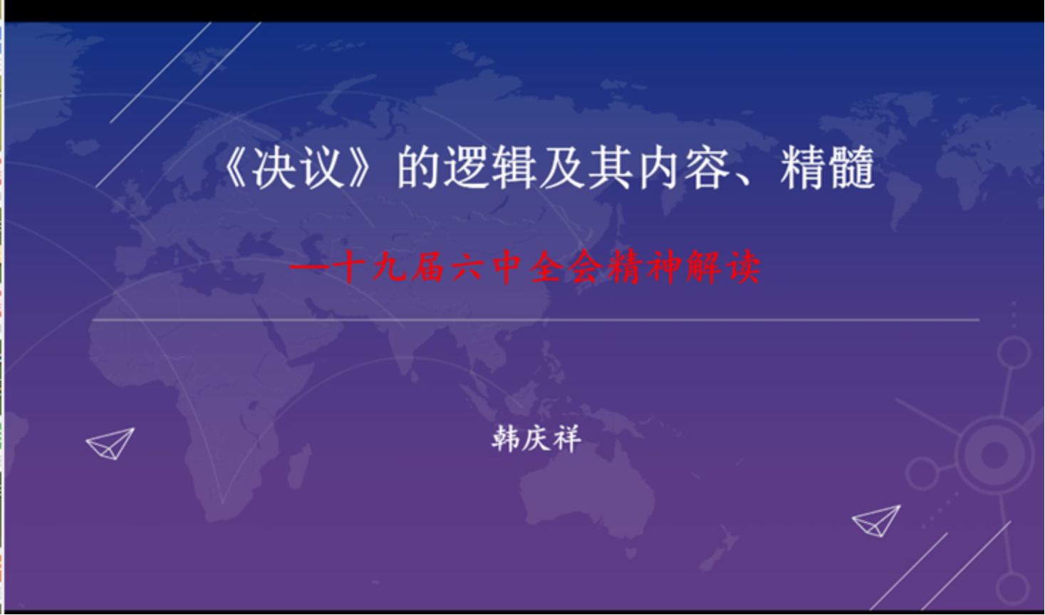 2022年3月18日,在学校思想政治理论课教师座谈会召开三周年之际,BB贝博艾弗森原官方网站、BB贝博艾弗森原官方网站中共党史党建研究院、高校思想政治理论课“手拉手”集体备课中心(BB贝博艾弗森原官方网站——青海省)联合举办的“静如讲坛”2022年第一讲成功举行。中央党校一级教授,原中央党校校委委员、中央党校副教育长兼哲学部主任韩庆祥应邀作了题为“《决议》的逻辑、内容与精髓—十九届六中全会精神解读”的专题讲座。BB贝博艾弗森原官方网站师生、高校思想政治理论课“手拉手”集体备课中心(青海省)部分教师以及兄弟院校师生500多人聆听了讲座。讲座以线上腾讯视频会议形式进行,由BB贝博艾弗森原官方网站院长张润枝教授主持。 张润枝教授主持会议 张润枝院长对韩庆祥教授百忙之中做客静如讲坛表示衷心感谢,并向参与讲座的师生扼要介绍了韩教授的学术成就。韩庆祥教授围绕党的十九届六中全会精神和《中共中央关于党的百年奋斗重大成就和历史经验的决议》精神(以下简称《决议》),从六个方面概括了《决议》的逻辑及其精髓,即要用根本问题解释百年奋斗,用百年奋斗创造重大成就,从重大成就总结历史意义,从历史意义提升历史经验,以成就经验支撑两个确立,用“两个确立”确保强国复兴。 韩庆祥教授强调,《决议》具有深远重大意义,是统一全党思想、意志、行动,凝聚全党全军全国各族人民的智慧和力量。《决议》不仅为今年党的二十大胜利召开保驾护航,为未来近三十年党的政治格局与实现中华民族伟大复兴战略全局奠基坚实基础,而且更加坚定而自觉地为中国人民谋幸福,为中华民族谋复兴、为世界谋大同、为中国共产党谋强大、为马克思主义谋生机。 韩庆祥教授讲座进行 BB贝博艾弗森原官方网站副院长杨增岽教授在讲座最后作了总结。杨老师认为,韩庆祥教授两个小时的讲座从哲学视角系统阐释和分析了《决议》的内容、逻辑与精髓,使我们能够准确而深刻地领会百年党史决议的重大而深远的意义。韩老师所讲述的六个方面的内容各有各的内在逻辑,而从整体上看六个方面的内容又是一个完整整体,其中关于中国共产党特质、关于“五谋”的论述等,很多新见解、新解读和新阐释,值得我们认真思考。杨老师认为,韩教授的整场讲座逻辑清晰、内容丰富、思想深邃,注重历史、理论和现实的结合,为我们带来了关于党的十九届六中全会精神和百年党史决议的最系统、最前沿的解读。 杨增岽教授总结 “静如讲坛”是以已故中共党史学家张静如先生名字命名的学术讲坛,由BB贝博艾弗森原官方网站主办,旨在缅怀前辈学人的严谨治学风范和高尚学术人格。讲坛汇聚中共党史党建和学术界的一流专家学者,展示中共党史党建研究的最新前沿动态,为加强马克思主义理论教育和中共党史党建学科建设提供交流平台。
